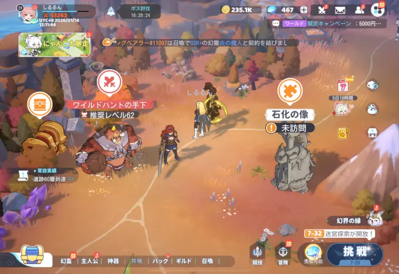 本作のデイリー任務は、1日10分あれば終わります。 メインクエストや竜の遺跡といった育成要素は自動進行に対応しており、日課ステージは「掃討機能(一瞬でクリア扱いにする機能)」で瞬時に終了。この「徹底したお手軽さ」がベースにありつつも、要所のボス戦では手動操作が有利に働くといった「ゲーマーとしての遊び心」が1割ほど絶妙にブレンドされています。