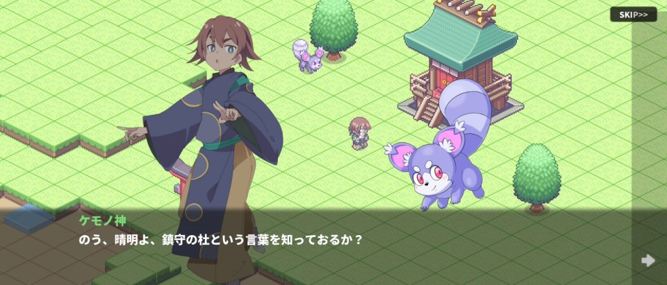 「ケモミミヤシロ」は、陰陽師となったプレイヤーがケモノ神たちと協力し、荒れた神社を再建していく放置型タクティクスRPGです!