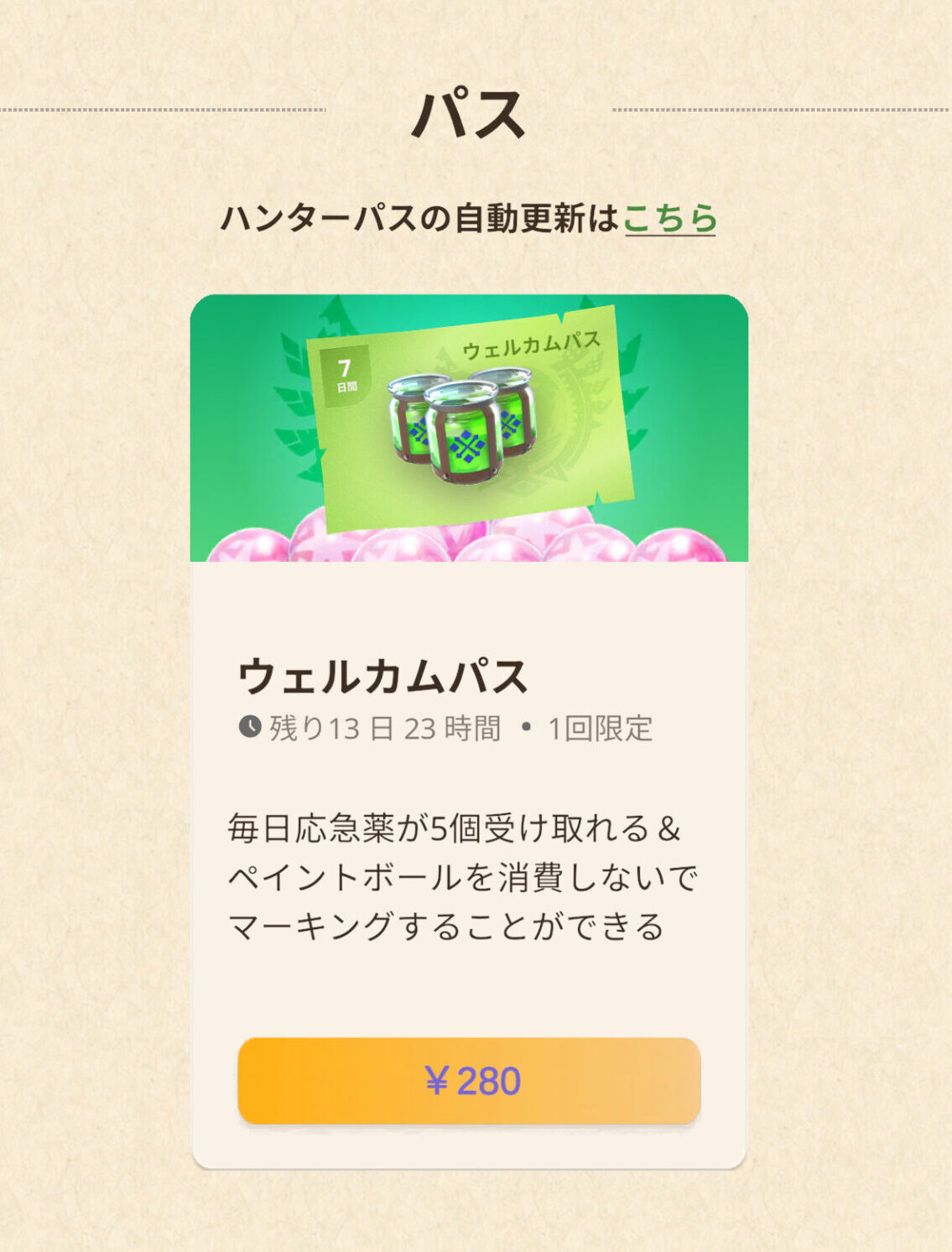 初心者の方に、僕が自信を持っておすすめするのが期間限定や特定の条件下で購入できる『ウェルカムパス』などのパス系アイテムです!
