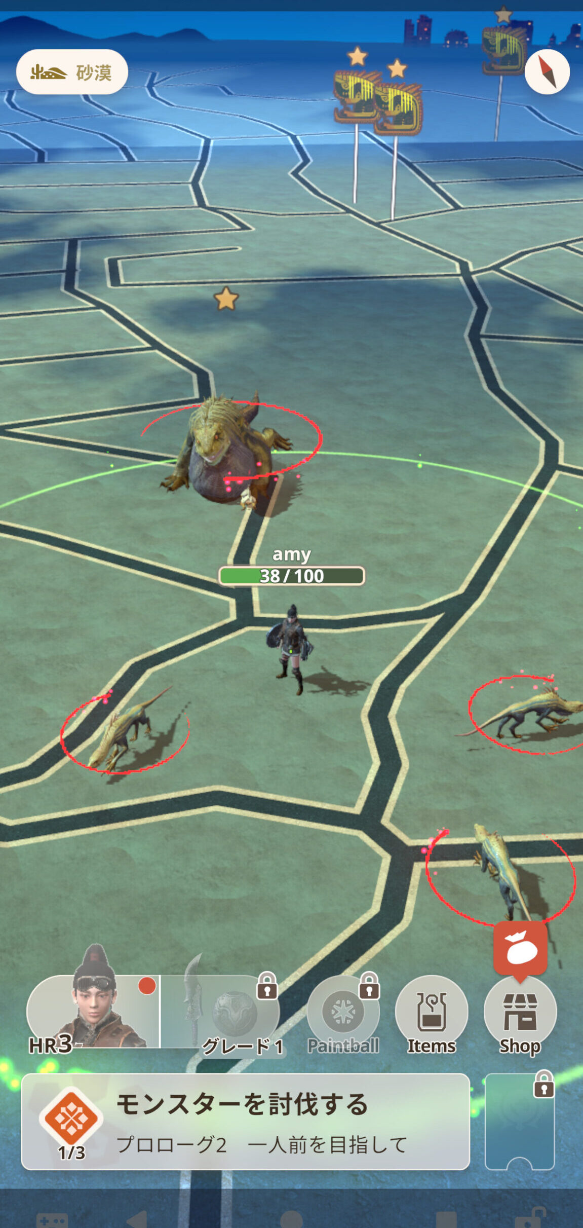 これまでのモンハンといえば、据え置き機の前でじっくり腰を据えて遊ぶスタイルが主流でしたが、本作は「外に出る」ことが最高のプレイ体験に繋がります。アプリを起動すると、そこには現実の地図とリンクしたフィールドが広がっており、近所の公園が「森林」、駅前が「砂漠」、住宅街が「沼地」へと変貌します。これら3つのエリアは日替わりで変化するため、毎日同じ道を歩いていても新しい発見があるのが面白いポイントですね。