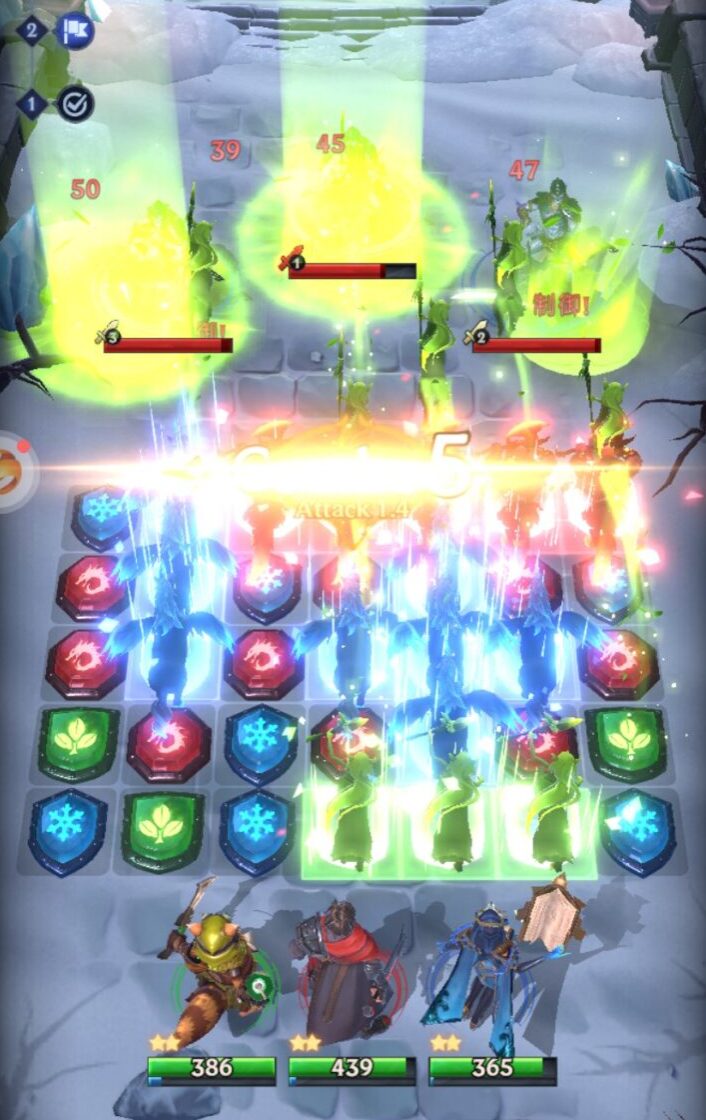 さらに、敵のいる列で確実に当てるか、いない列でゲージを貯めて次ターンの爆発力を作るかの判断も重要。ターン制ゆえに「今ダメージを取る/次に備える」の駆け引きが効き、同じマッチでも手触りが変わるのがクセになります。例えば、強力な全体攻撃を放つボスが相手なら、ボスのいない端の列でピースを消して、ヒーラーのスキルを最速でチャージする……といった高度な立ち回りも可能です。
