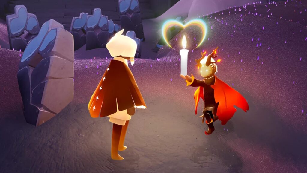 一部の扉や仕掛けは複数人での点灯や接触が条件です。一人では絶対に開かない扉の前で困っていると、どこからともなく他の星の子がやってきて手伝ってくれることがあります。そんな時は、近づいてキャンドルを掲げてお礼を伝えましょう。気に入ったらキャンドルを1本渡すと知り合いからフレンドへ昇格でき、フレンドツリーで2人用エモートやワープ機能を順に解放できます。序盤から交流しておくと探索がぐっと楽になります。